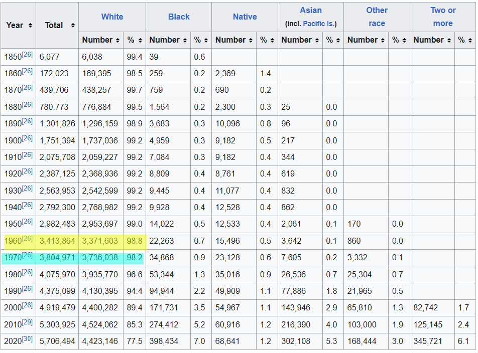 I am sure not everything was perfect because people aren’t perfect but damn that looks pretty incredible compared to now. Why was it such a beautiful place in 1968? Let’s look at the demographics of Minnesota…..