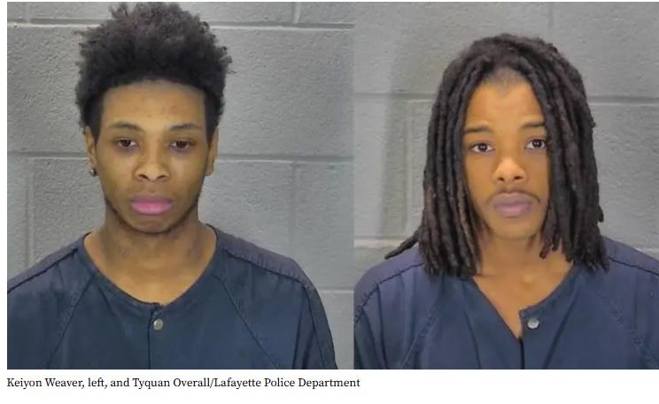 Keiyon Weaver, 20, of Lafayette and Tyquan Overall, 19, of West Lafayette were both arrested in connection with the armed robbery. Both men are charged with armed robbery, conspiracy to commit armed robbery, robbery, and theft.
