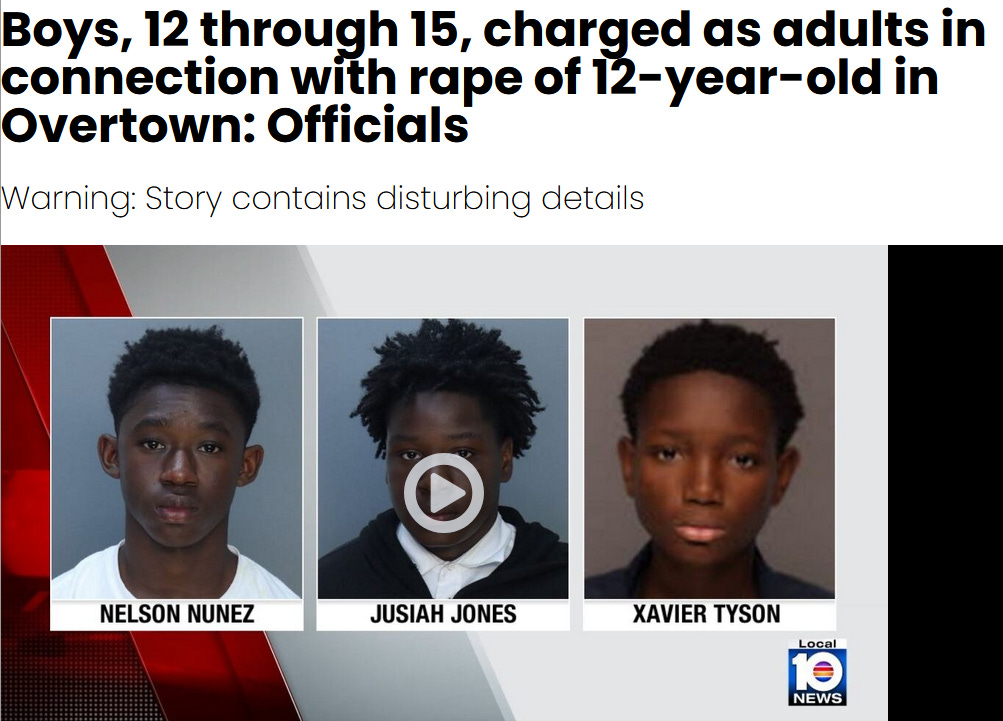 Boys, 12 through 15, charged as adults in connection with rape of 12-year-old in Overtown: Officials
