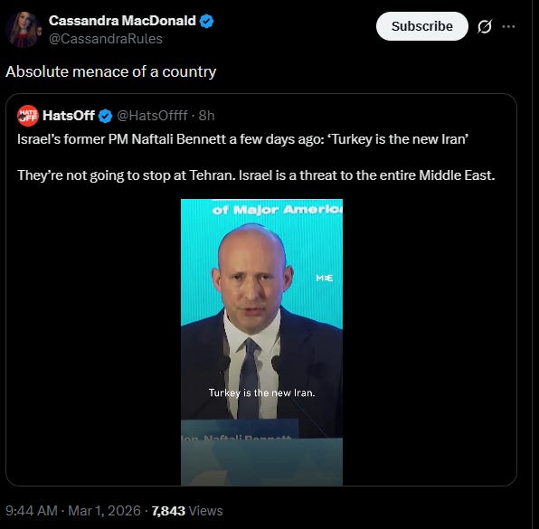 Cruz is a vile Cuban Canadian zionist – of course he’d be just perfect for the Supreme Court of Fools. I saw that quote about Turkey yesterday and had to stop skimming headlines in disgust. You’re correct – Israel will never stop, until they are stopped. And no one will stop them until merka stops being their b*tch. So . . . don’t hold your breath. The ‘peace’ president sure seems to have a hankering for war, and all the patriotards and magaturds think it’s just grand. He even has good press because some Iranian womyn in merka cheer him. See, his war has grass roots support!