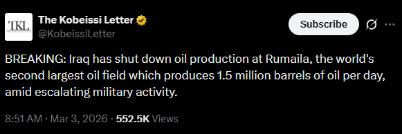 And the world’s largest LNG terminal in Qatar is closed, too. Economic turmoil, incoming.