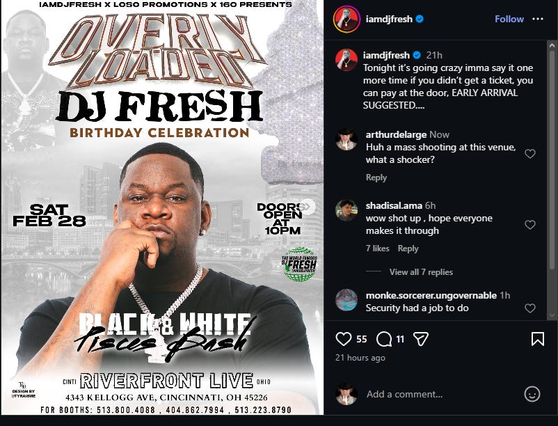 Down in Cinci we had a more traditional mass shooting….
