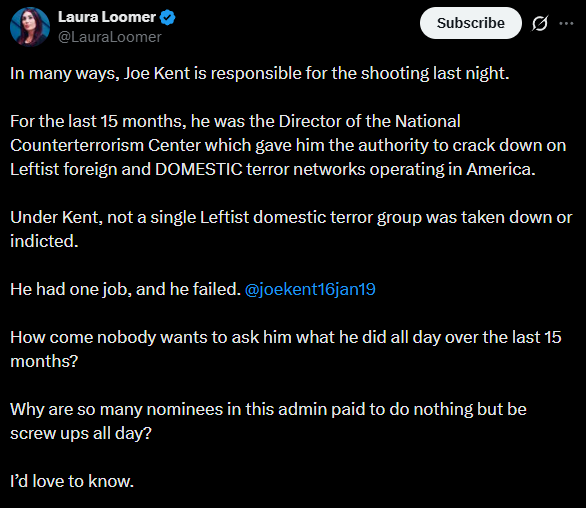 How exactly was Joe Kent supposed to pick this guy out of the millions of loons on social media screaming about Orange Man Bad? There are no calm, “here are 10 things I disagree with Trump” people remaining on the American left.
