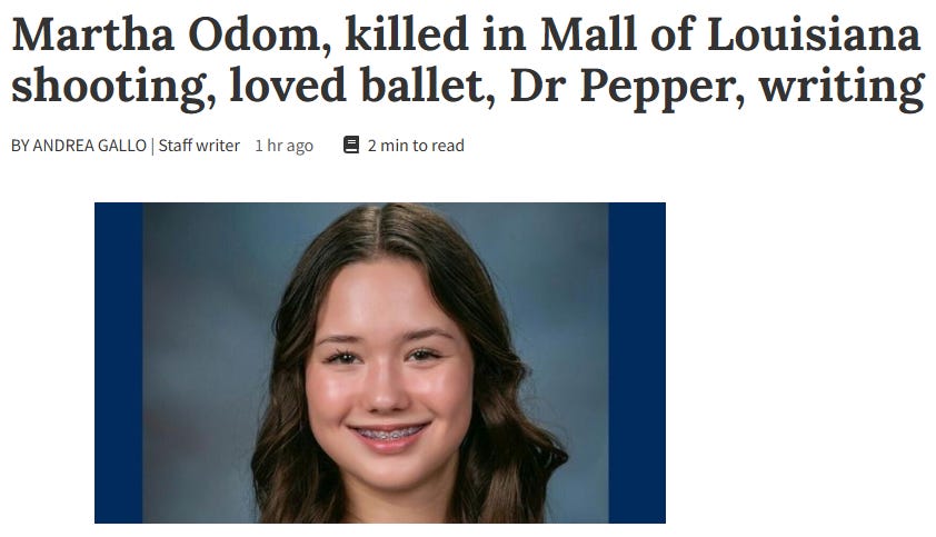 Martha Odom, killed in Mall of Louisiana shooting, loved ballet, Dr Pepper, writing